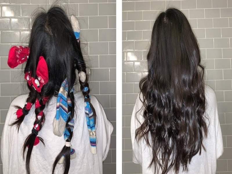 Mẹo uốn tóc lọn to bằng khăn lụa hoặc tất dài
